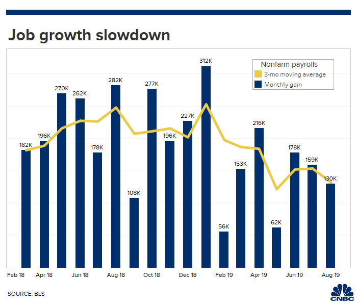 The government reported Friday that payrolls increased 130,000 during the month, 20,000 below the 150,000 economists polled by Dow Jones had forecast. The government also said wages increased at a solid clip, up 0.4% in August and 3.2% over the year.