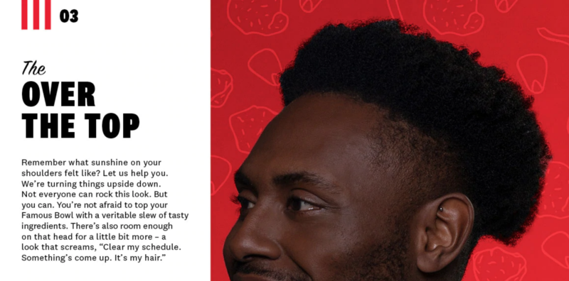 A fin de promocionar sus “Famous Bowls” KFC lanzó a principios de este año una campaña en la que invitaba a sus clientes a regresar a los 90 y cortarse el pelón a tazón (ese infame estilismo capilar que tantos estragos causó por aquella época).