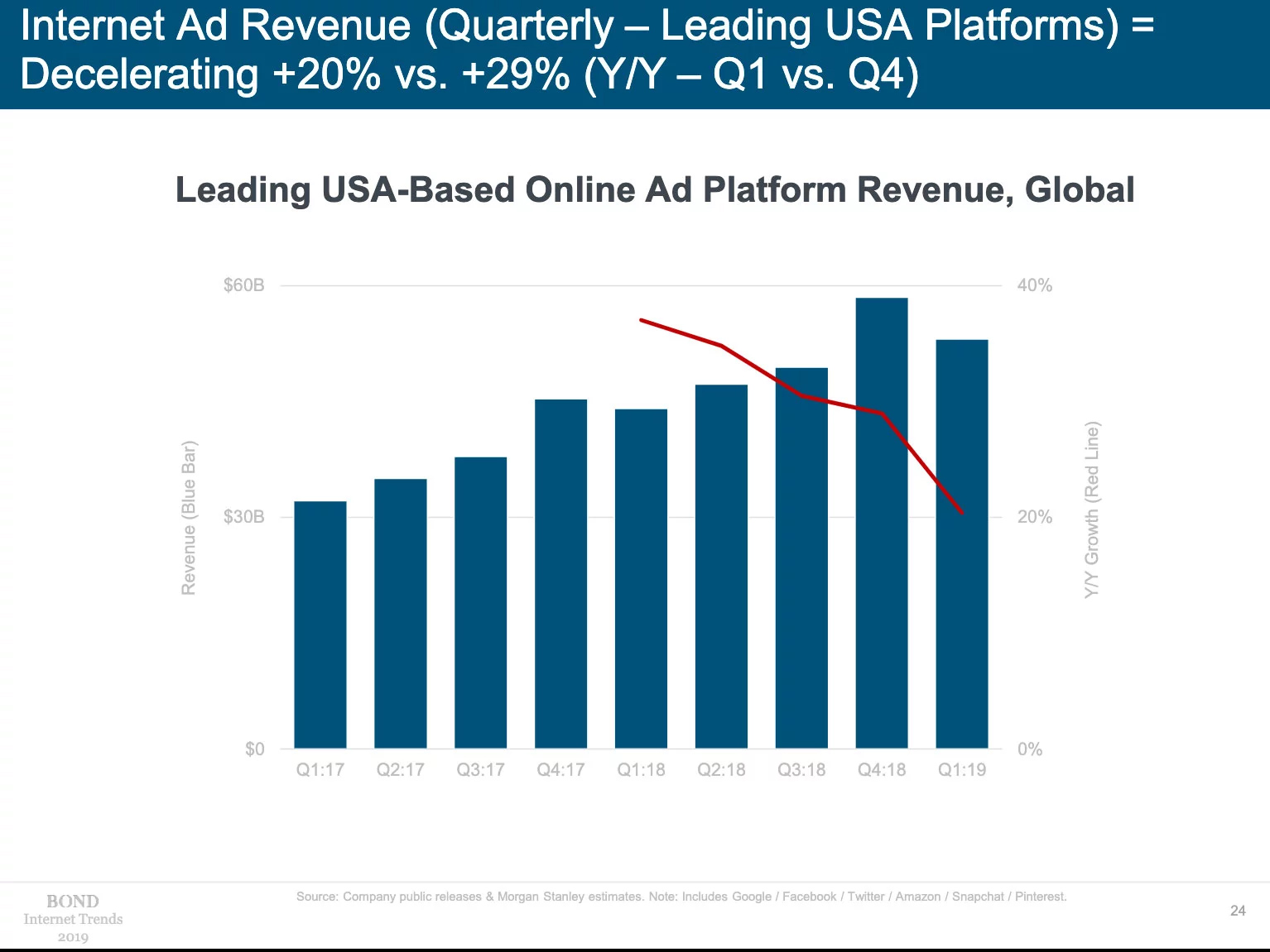 11. Pese a que la gente invierte cada vez más tiempo en internet, el crecimiento de los ingresos emanados de la publicidad digital se está ralentizando (pasando de un crecimiento interanual del 29% al 20%).