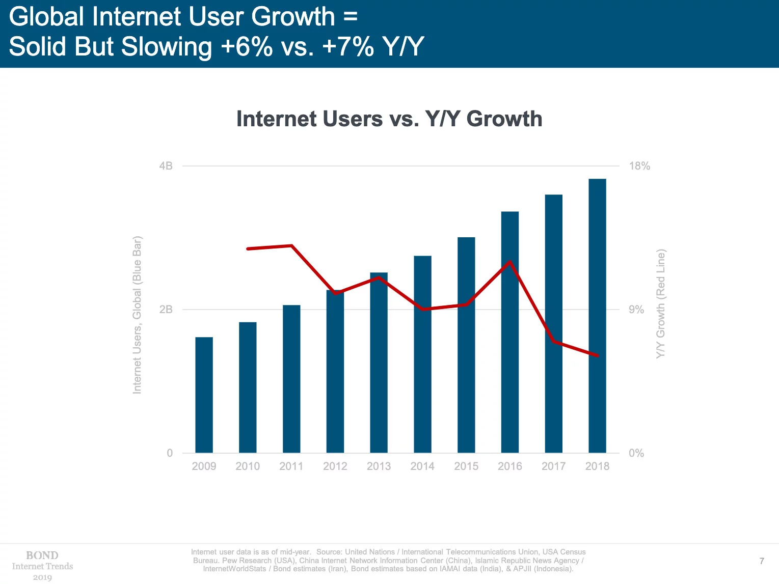 4. Por primera vez a más de la mitad de la población global se le puede colgar la etiqueta de internauta. En 2018 3,8 billones de personas (aproximadamente el 51% de la población mundial) estaban conectadas a internet. En 2017 eran 3,6 billones (49%) las personas con acceso a la red de redes.