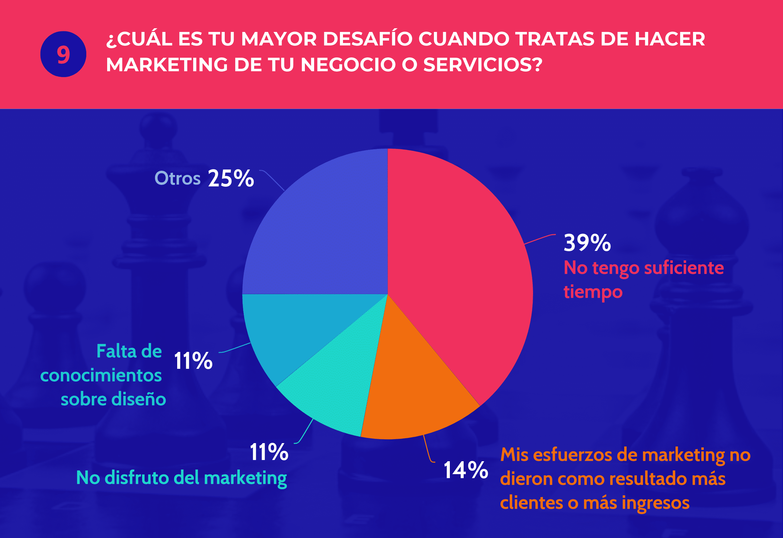 8. ¿Cuál es el mayor reto que enfrentas cuando intentas hacer marketing de tus servicios o negocio?