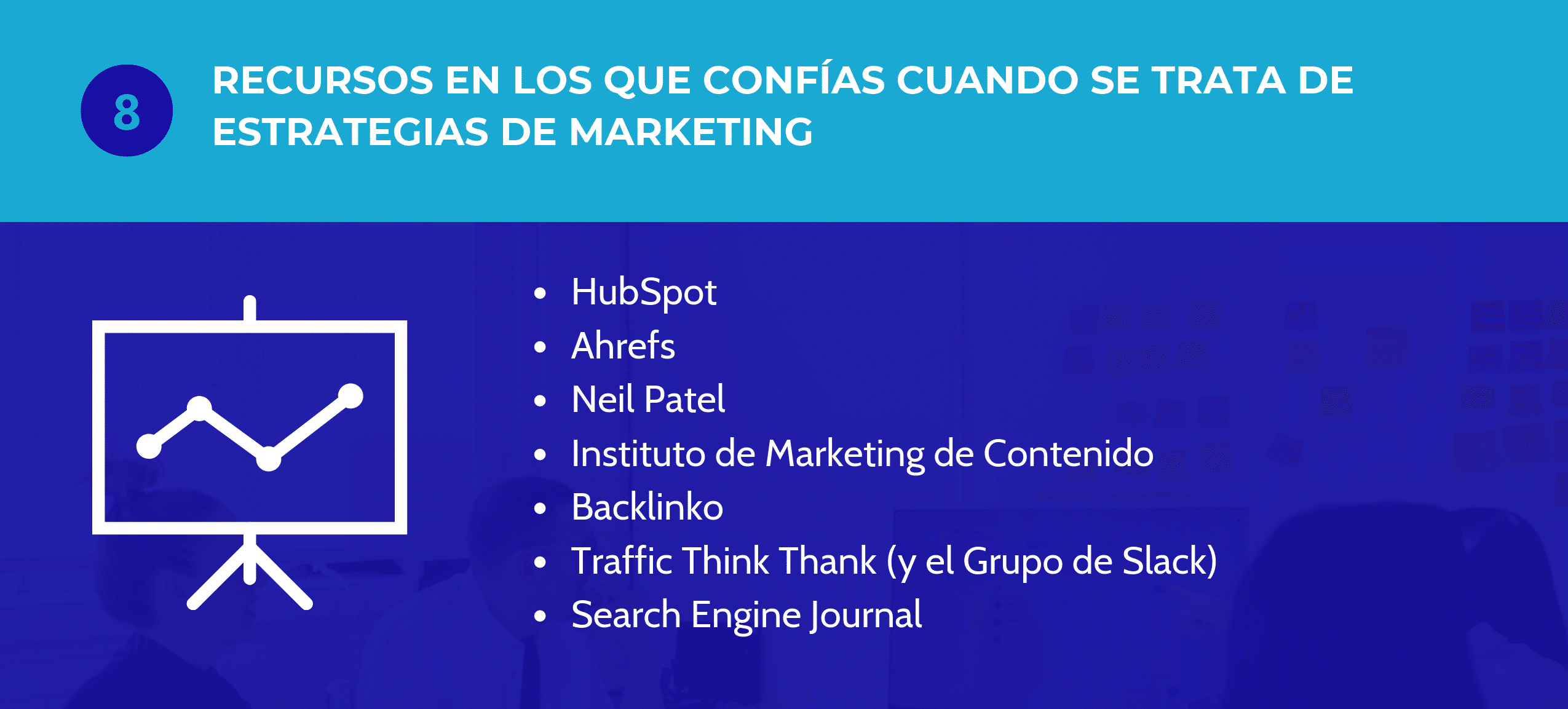 Entre los recursos en los que más confían los freelancers y los consultores a la hora de diseñar estrategias de marketing destacan HubSpot, Ahrefs, Neil Patel y Backlinko, entre otros.