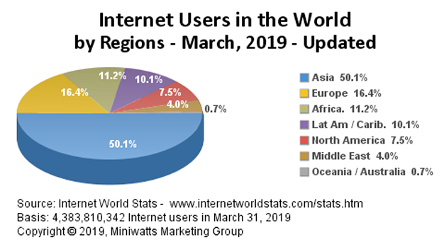 La fotografía ilustra el impacto global de Internet en nuestro presente. Y es que desde la transmisión del primer correo electrónico a través de Arpanet, o desde la puesta en línea de la primera página Web hace 30 años, Internet se ha transformado en un universo digital capaz de conectar a 4,3 mil millones de personas en todo el mundo. Algo jamás alcanzado por otra tecnología.