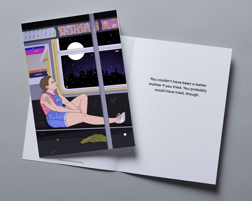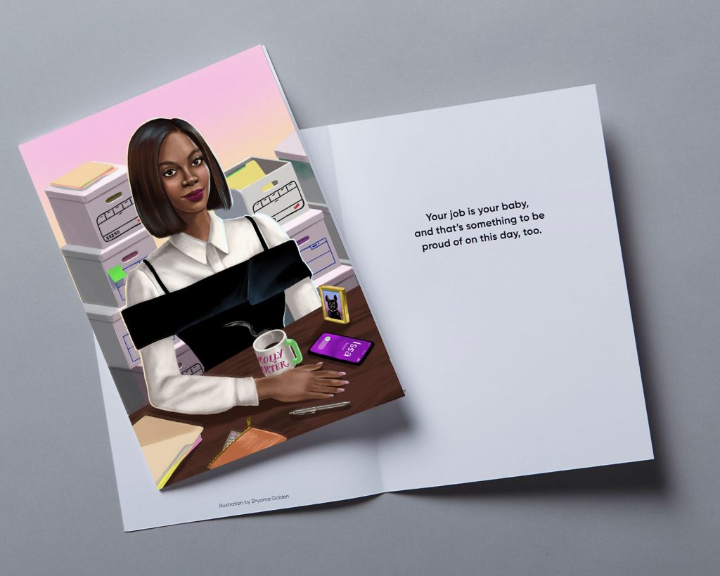 Una de las protagonistas de las postales es Molly Carter, protagonista de la serie Insecure. Como ya sabrán todos los fans de este show, Carter no tiene hijos, pero aun así se merece ser agasajada con una calurosa felicitación el Día de la Madre. En el interior de la tarjeta protagonizada por Molly Carter puede leerse la siguiente dedicatoria: “Tu trabajo es tu bebé y eso es algo de lo que estar orgullosa también en este día”.