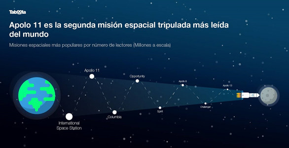 Sorprendentemente, a pesar del impacto mundial que tuvo la llegada del hombre a la Luna, la Apollo 11 no es la misión tripulada que genera más tiempo de lectura entre los usuarios, sino que lo son las de la Estación Espacial Internacional (ISS). Al mismo tiempo, se apunta que el tercer lugar lo ocupa la tragedia del transbordador espacial Columbia. Por otro lado, en cuanto a los astronautas que generan más interés, el estudio señala que cincuenta años después de la llegada del hombre a la Luna, continúan siéndolo Buzz Aldrin -el piloto del módulo lunar de la Apollo 11- y Neil Armstrong, comandante de la misión, cuya frase “Un pequeño paso para el hombre, un gran salto para la humanidad”, ha quedado grabada para la historia.