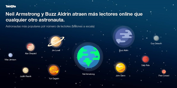 Con motivo del 50 aniversario de la misión Apollo 11, con la que el hombre llegó a la a Luna, un estudio mundial de Taboola ha analizado el comportamiento de más de 100 millones de usuarios en 158 países, en relación a las misiones tripuladas al espacio, recogiendo, asimismo, su interés acerca de los astronautas más famosos de la historia.