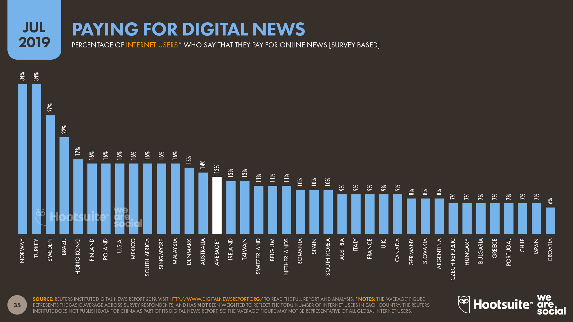 Menos halagüeñas son las cifras para la prensa que, a pesar de haber reivindicado el papel de perro guardián ante el fenómeno de las fake news, no parece haber convencido a una audiencia 4 veces más tendente a utilizar ad blockers que a pagar por las noticias, aunque más del 50% se muestra preocupada por la proliferación de la información falsa.