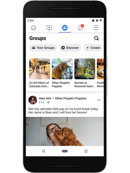 Así, la pestaña de grupos incluye un feed personalizado sobre la actividad de las comunidades a las que pertenece el usuario, así como una nueva herramienta de descubrimientos. Las recomendaciones sobre grupos se incluirán, además, en otras áreas de la red como Marketplace, Today In o Facebook Watch; se incluirá más contenido de los grupos en el News Feed y los usuarios podrán compartir contenido directamente a los grupos desde él.