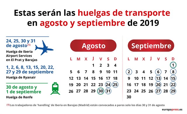 Calendario de huelga de transporte para finales de agosto y septiembre de 2019 – EUROPA PRESS