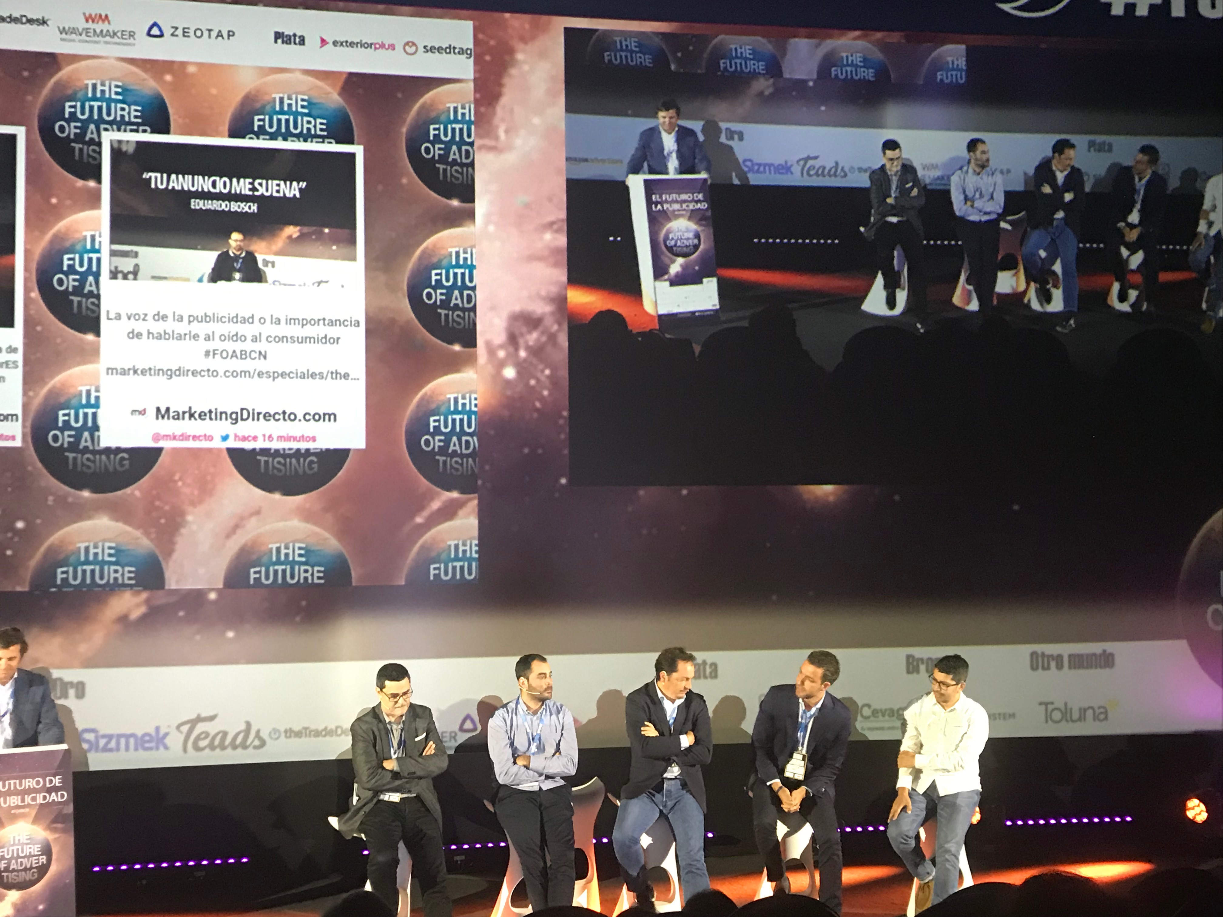 Esto es lo que Miquel Campmany, jefe de publicidad de Nestlé España; Germán Guzmán, digital marketing manager de Unilever; Oriol Ramón, director de marketing digital de Banco Sabadell y Álvaro Rodríguez, sales director de TAPTAP Digital y Juan Sevillano, manging director de Sizmek Spain han analizado en la mesa redonda “El Futuro de la Publicidad”, celebrada en FOA Barcelona 2019 y moderada por Borja Fernández, country manager en Seedtag.