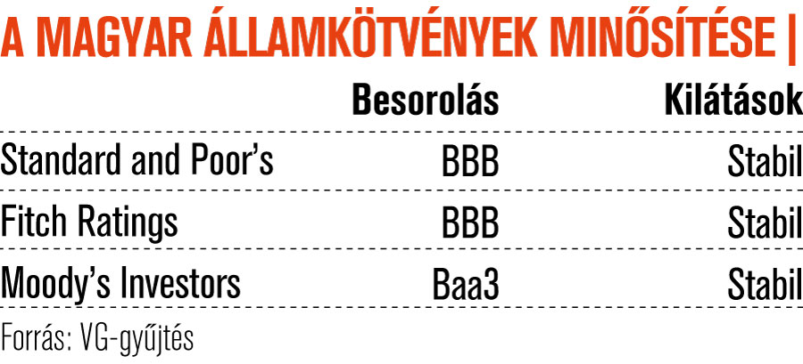 Mindkét cég stabil osztályzatot társít a besoroláshoz, ami azt jelzi, hogy csak kivételes esetben – ilyen volt a 2008-as válság – módosítanak a kötvények minősítésén.