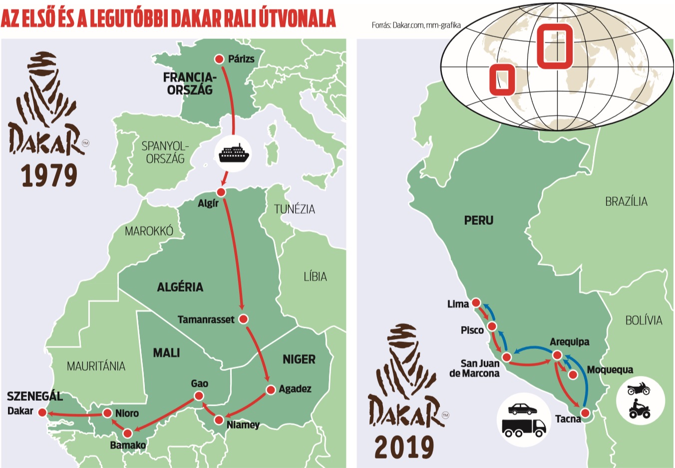 Az első és a legutóbbi Dakar rali útvonala