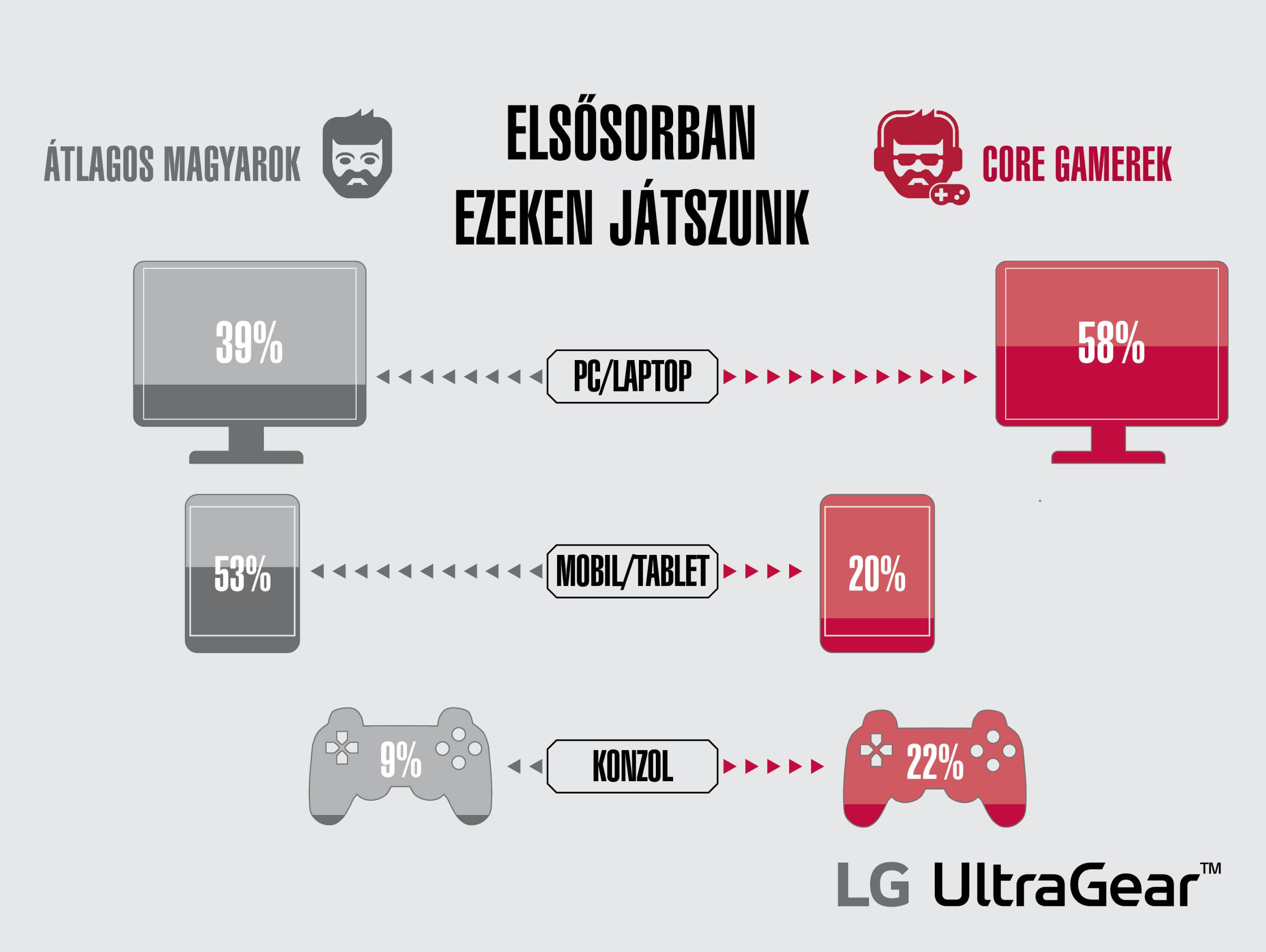 A LG Electronics (LG) friss, reprezentatív, országos kutatása[1] azt mérte fel, hogy mivel, milyen gyakorisággal és milyen eszközökön játszanak a magyar core gamerek − vagyis azok, akik gyakran és sokféle játékkal szórakoznak, de nem erről szól az életük, azaz nem hardcore gamerek −, valamint az átlagos internetezők.