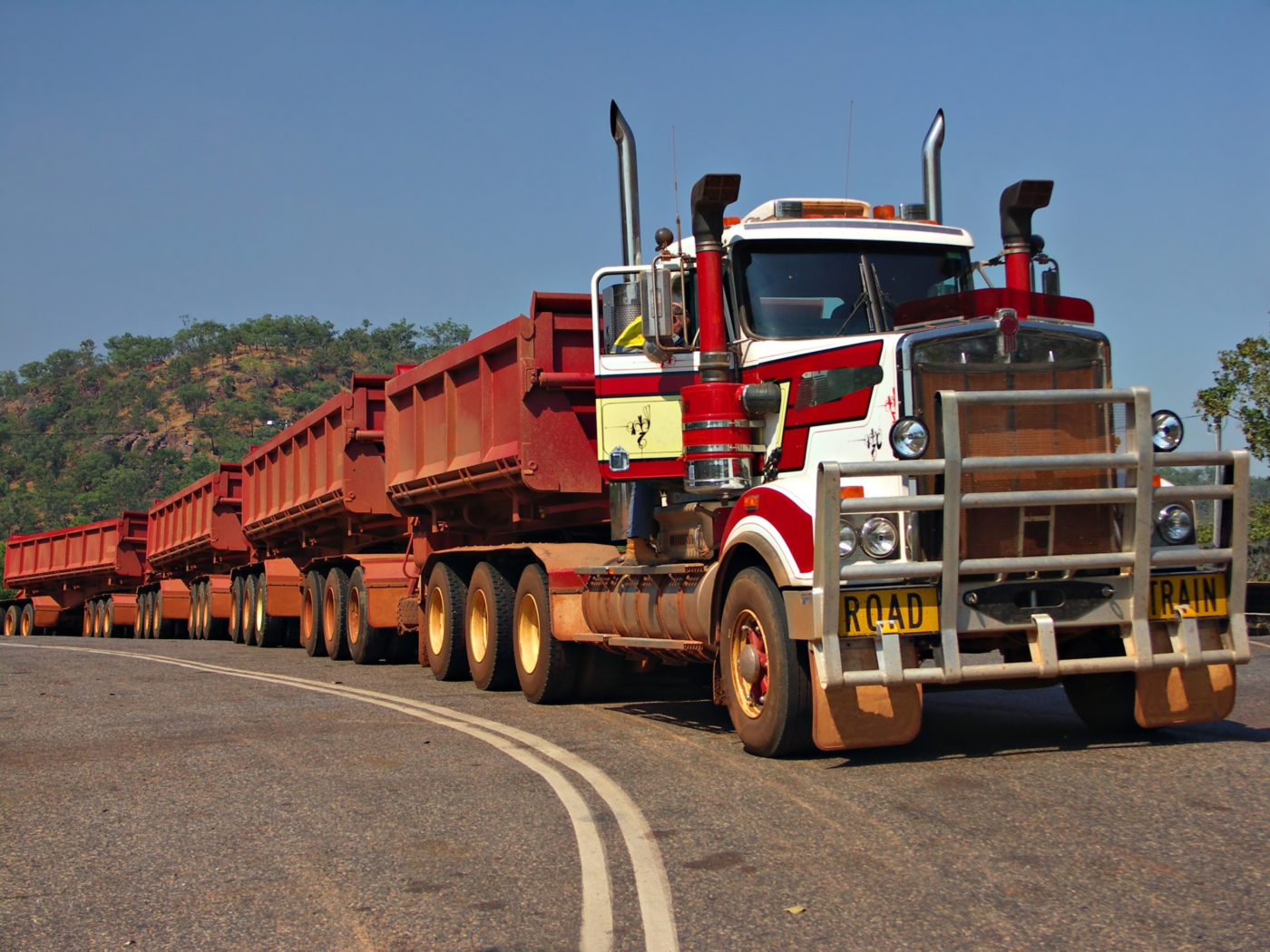 A road trainek Ausztráliában a szállítmányozás alappillérei, sokkal jelentősebb tényezők, mint a vonatok. Ennek oka az, hogy a hatalmas országban az elszigetelt településekhez nem éri meg vasutat építeni. A város határában létesített „rendező pályaudvarokon” viszont a kígyókamionokat pillanatok alatt szétakasztják, és már mehetnek is a kisebb vontatók a megrendelőhöz.