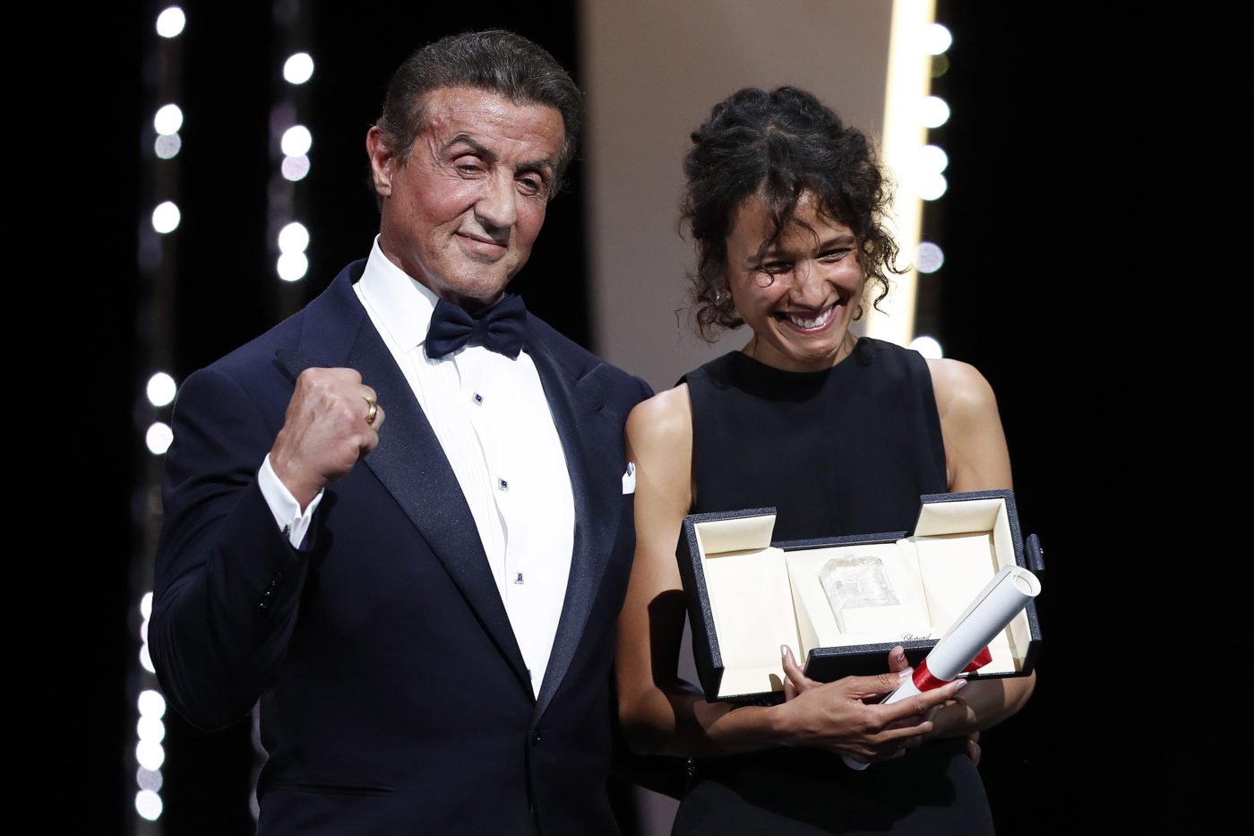 Mati Diop francia rendezõ, miután átvette a zsűri Nagydíját Sylvester Stallone színész-rendezõtõl