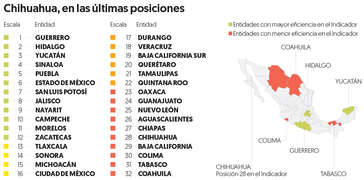 Lo anterior ubicó a la entidad en el lugar 28 del ranking de GLAC. Guerrero se posicionó como el mejor estado, con cero casos de migración ilegal reportados y 3.49 casos de narcomenudeo, equivalente a 127 casos en términos absolutos.