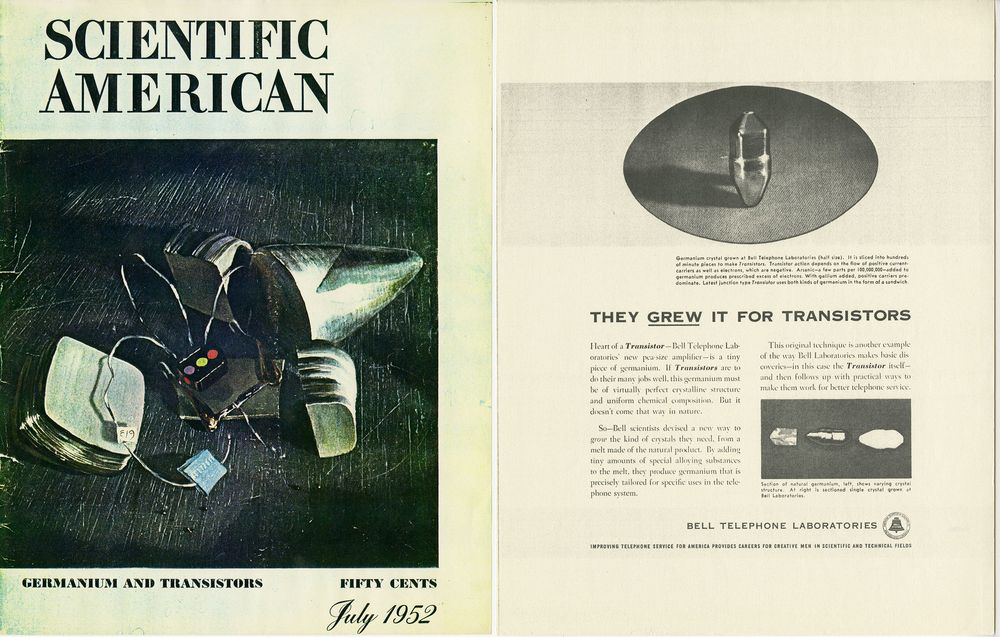 Bell Telephone Laboratories reclutó a Teal en 1930, antes de que terminara su tesis. En Bell, buscó formas de usar lo que llamó un “apego personal continuo” al germanio en su trabajo, aunque no fuera por otra razón que “buscar alguna forma de capitalizar este conocimiento e interés adquirido años antes”. Su deseo no era simplemente sentimental.