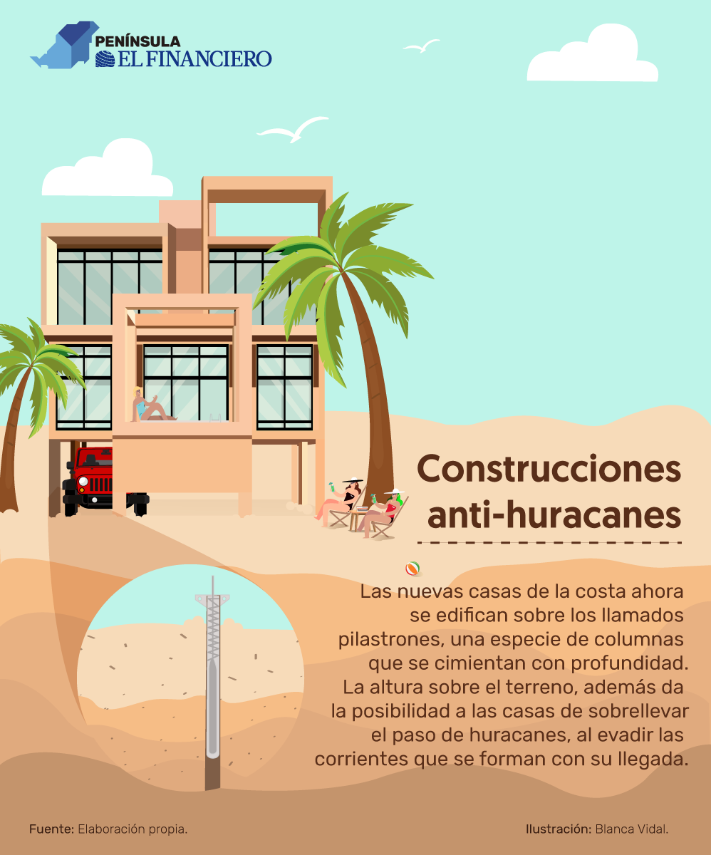 “Se construyen sobre pilastrones (pilastras), que miden un metro con 80 centímetros , así las están pidiendo ya”, cuenta Ulises Mézquita Martínez, un carpintero y rescatista de barcos de la zona de Progreso.
