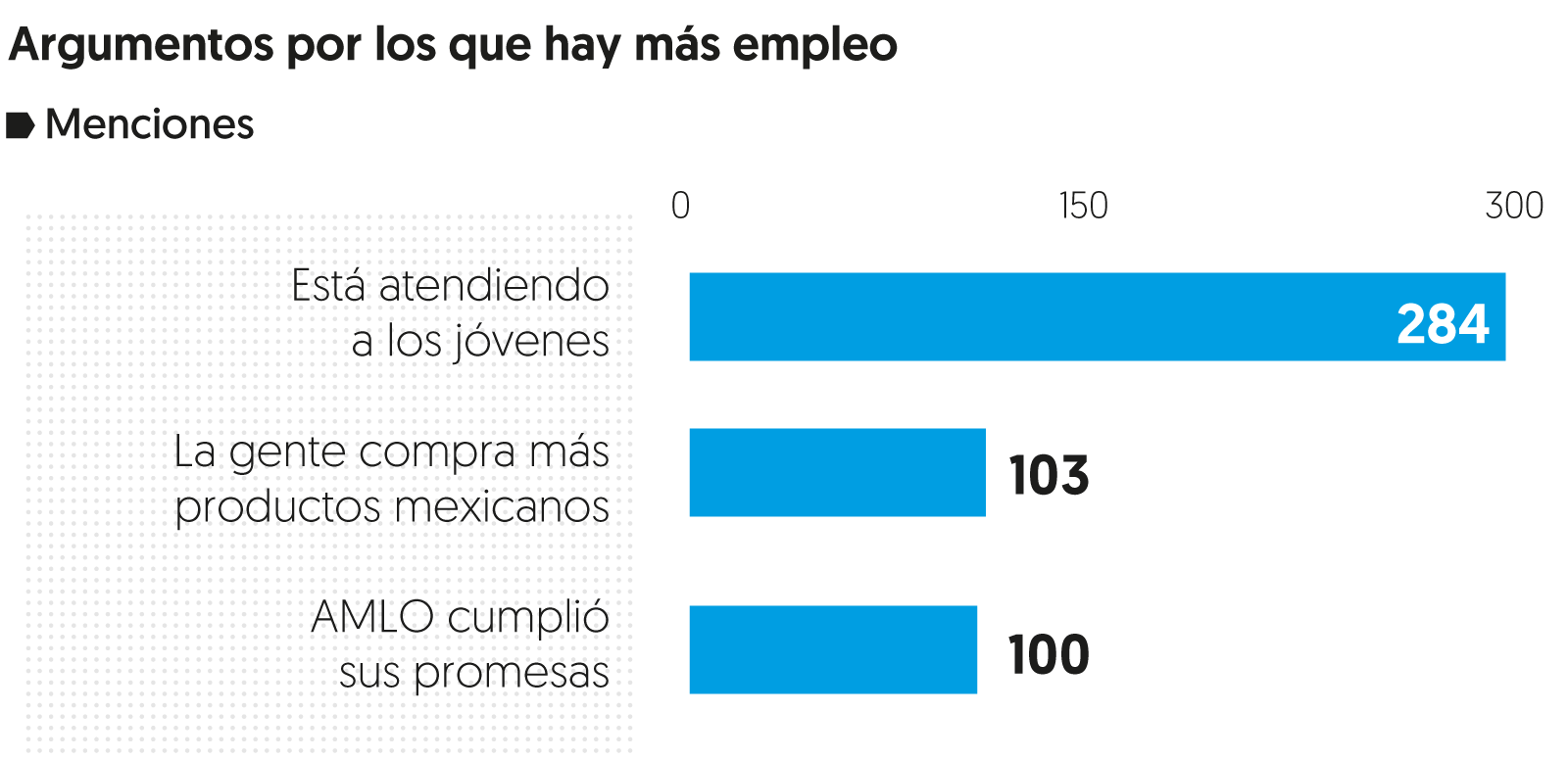 Por último, se consideró que Andrés Manuel López Obrador “sí había cumplido sus promesas”, ya que en siete meses de administración había logrado crear más empleos que en los “otros sexenios” generó 100 referencias.
