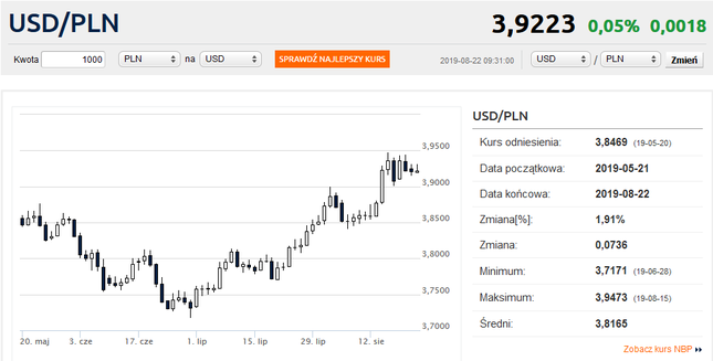 temu kurs USD/PLN osiągnął przeszło 2-letni szczyt tuż poniżej 3,95 zł.