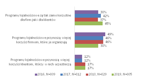 Polscy konsumenci częściej niż jeszcze rok temu dostrzegają korzyści dla siebie płynące z uczestnictwa w programach lojalnościowych. O 8 p.p. wzrósł odsetek osób twierdzących, że programy lojalnościowe są tak samo korzystne dla firm jak i klientów.