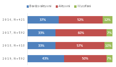 Poziom aktywności uczestników programów lojalnościowych (2016-2019)