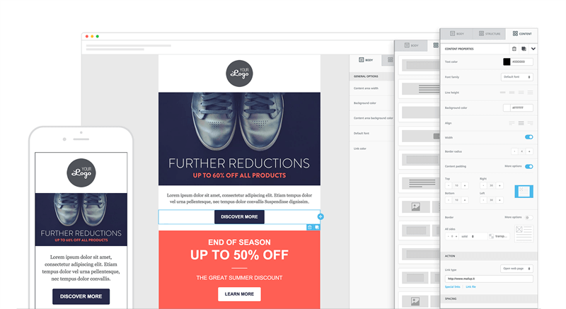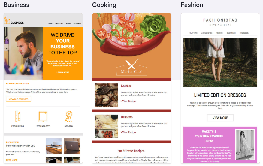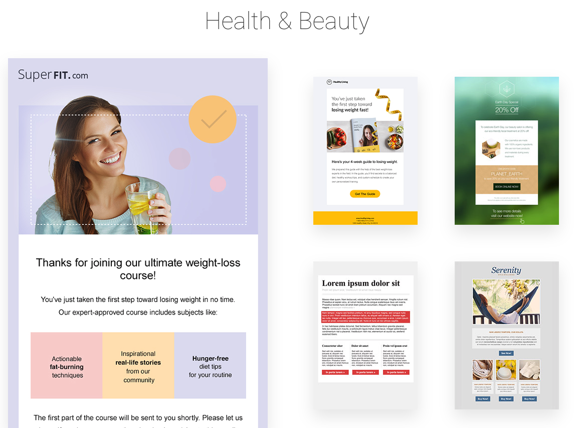 GetResponse cũng cho phép bạn tạo các bản tin email được thiết kế tốt với trình chỉnh sửa email kéo và thả, công cụ liên hệ phân đoạn, người tạo chiến dịch và công cụ kiểm tra A / B. Với rất nhiều mẫu để lựa chọn, bạn có thể tạo email để phù hợp với thương hiệu của mình và gửi email hiệu quả hơn.